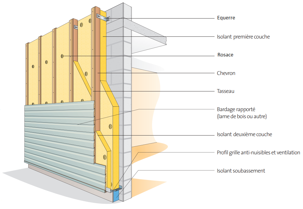 ■ L’Isolation Thermique par l’Extérieur sous bardage rapporté (ITE) consiste à envelopper le bâtiment d’un manteau isolant qui garantit la continuité de l’enveloppe et limite les ponts thermiques pour une performance d’isolation optimale et de grandes économies d’énergie.